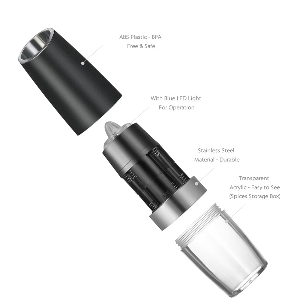 No Button One Hand Operation: Regardless if you have arthritis or you are just looking for convenience Kitchen gravity electric grinders are a perfect choice; All you need to do is tilt the grinder and it will automatically turn on- it doesn't get easier than that